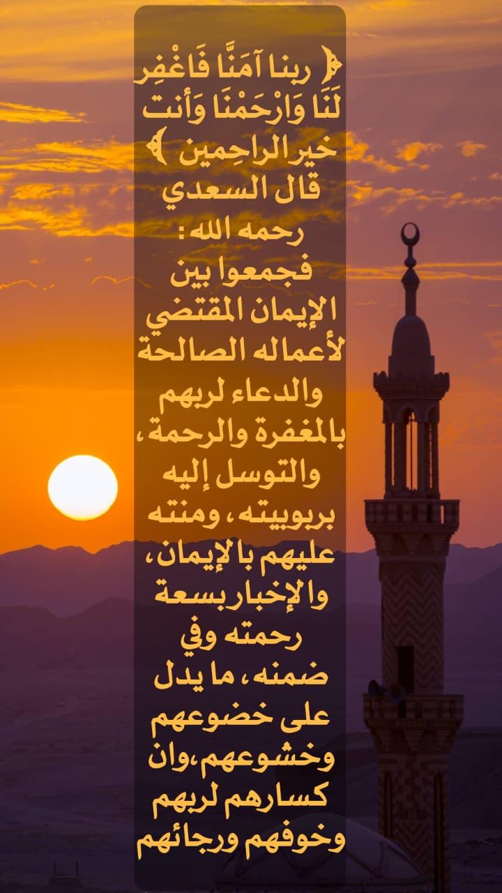 ﴿رَبَّنَا آمَنَّا فَاغْفِرْ لَنَا وَارْحَمْنَا وَأَنتَ خَيْرُ الرَّاحِمِينَ﴾