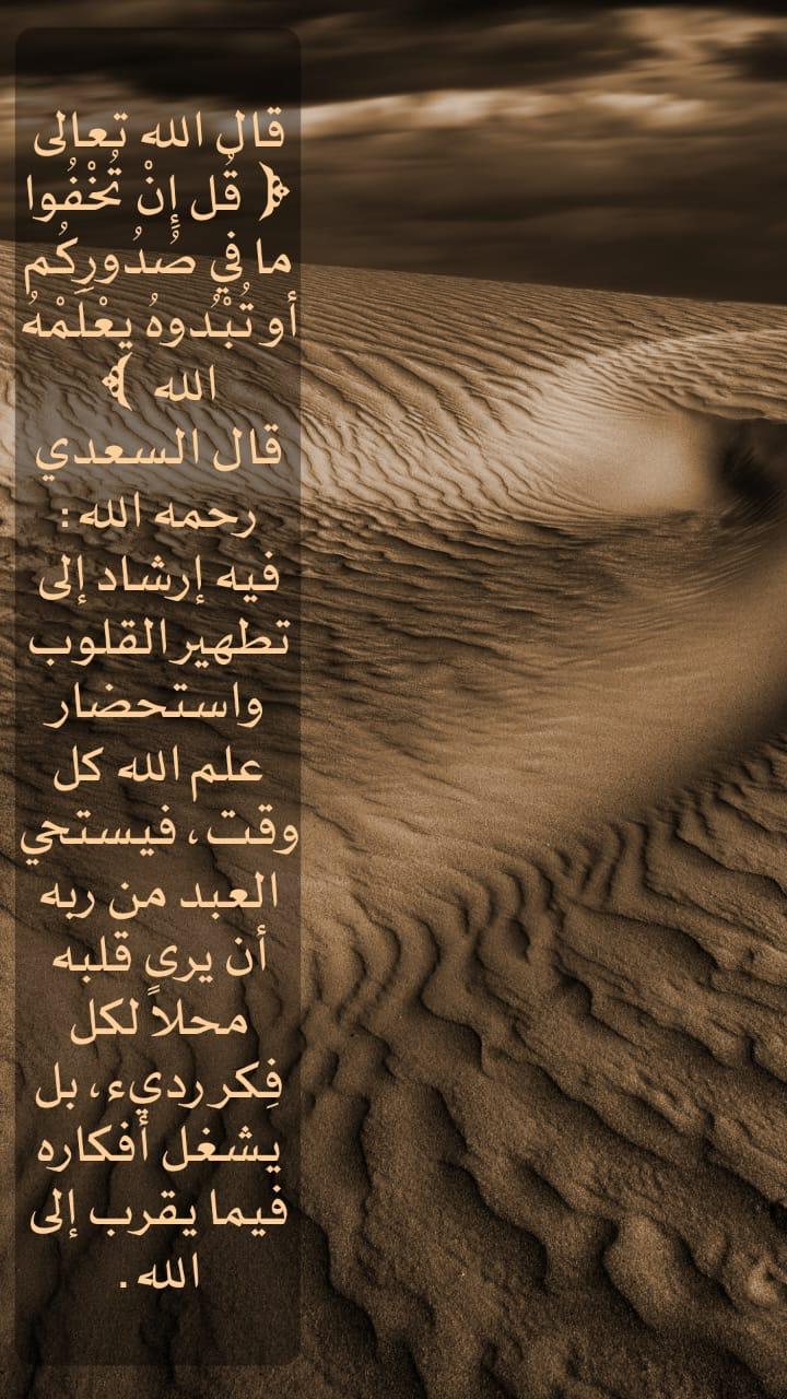 ﴿قُلْ إِن تُخْفُوا مَا فِي صُدُورِكُمْ أَوْ تُبْدُوهُ يَعْلَمْهُ اللَّهُ﴾