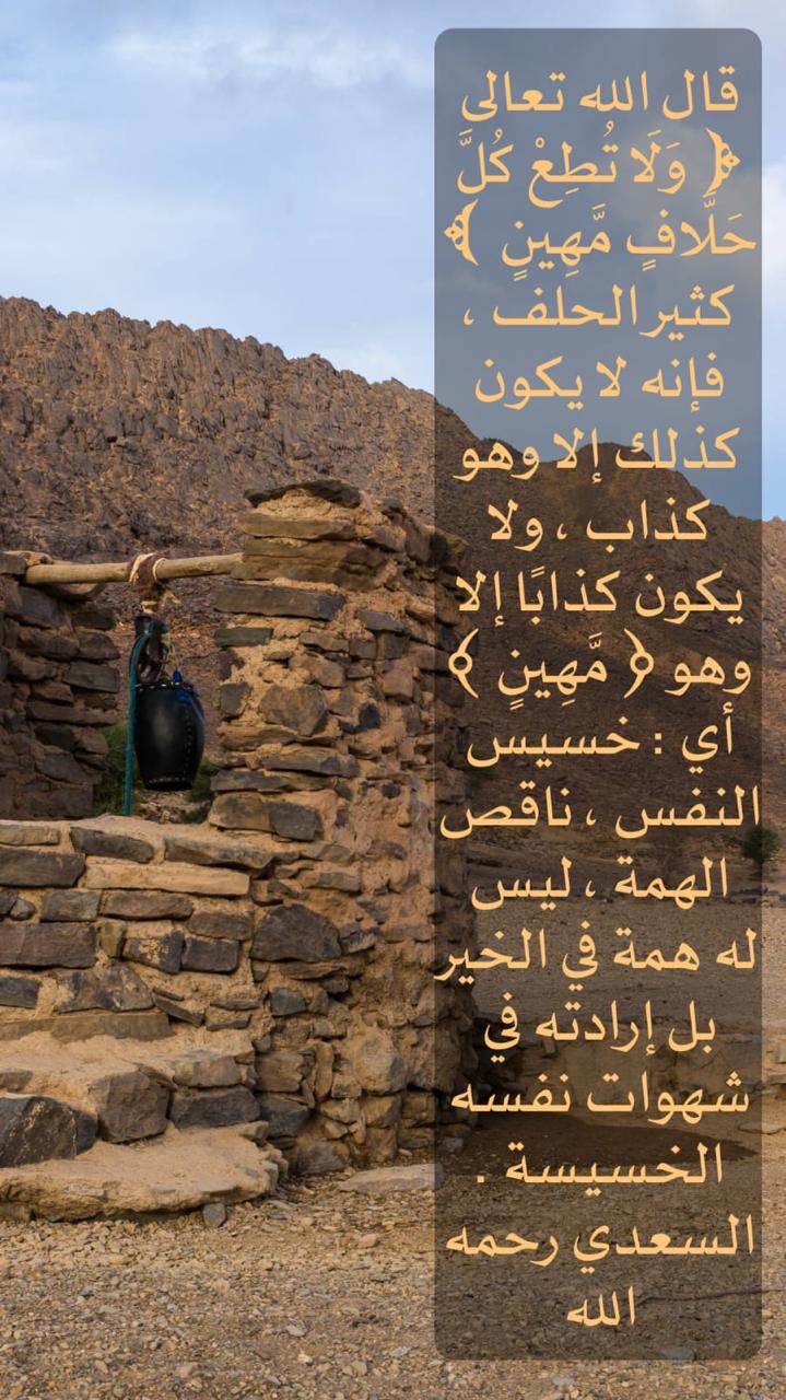 ﴿وَلَا تُطِعْ كُلَّ حَلَّافٍ مَّهِينٍ﴾
