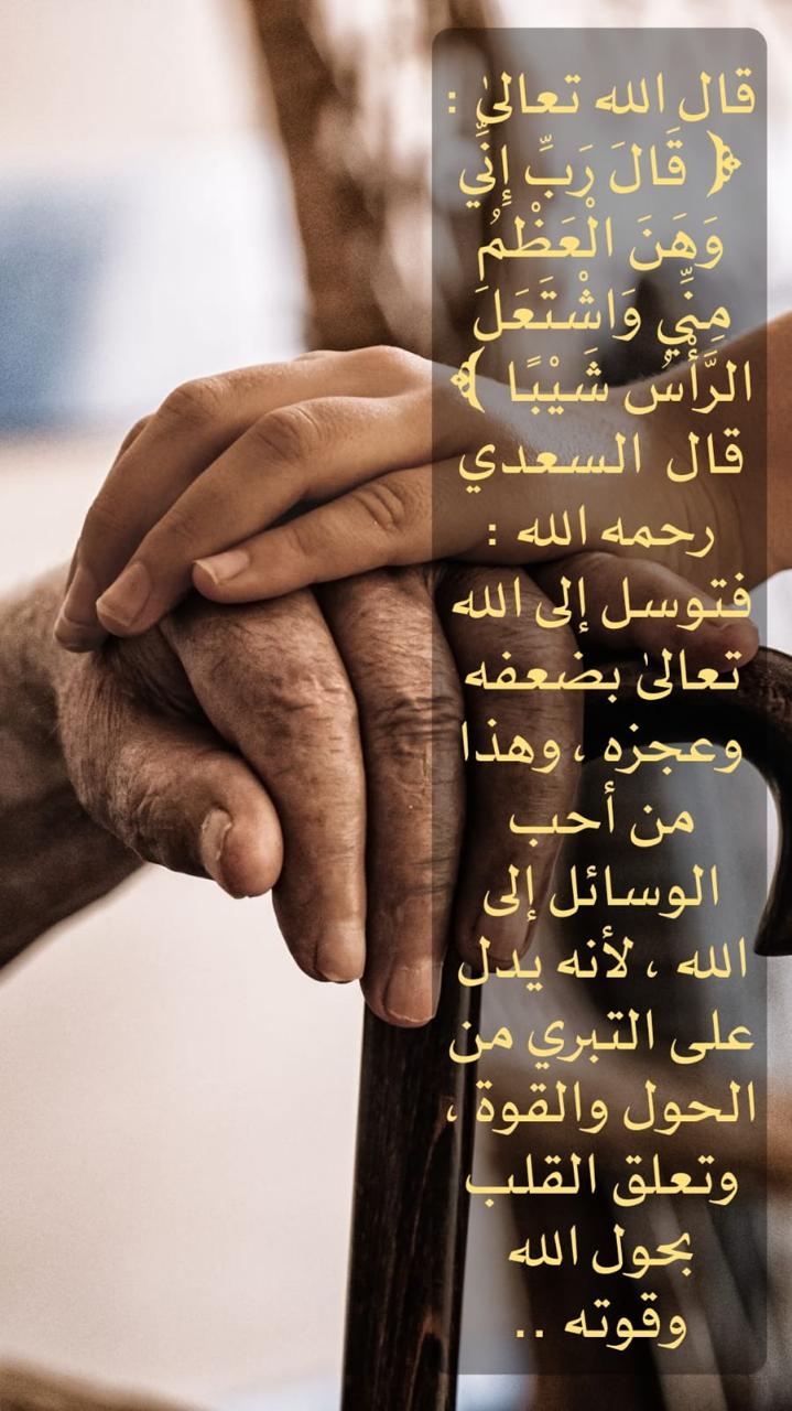 ﴿قَالَ رَبِّ إِنِّي وَهَنَ الْعَظْمُ مِنِّي وَاشْتَعَلَ الرَّأْسُ شَيْبًا﴾