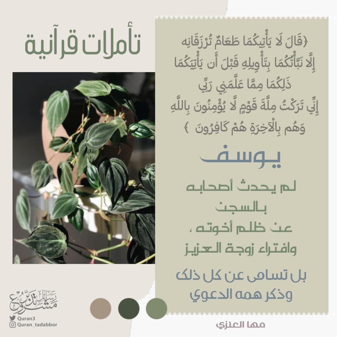﴿قَالَ لَا يَأْتِيكُمَا طَعَامٌ تُرْزَقَانِهِ إِلَّا نَبَّأْتُكُمَا بِتَأْوِيلِهِ قَبْلَ أَن يَأْتِيَكُمَا ذَلِكُمَا مِمَّا عَلَّمَنِي رَبِّي إِنِّي تَرَكْتُ مِلَّةَ قَوْمٍ لَّا يُؤْمِنُونَ بِاللَّهِ ... المزيد