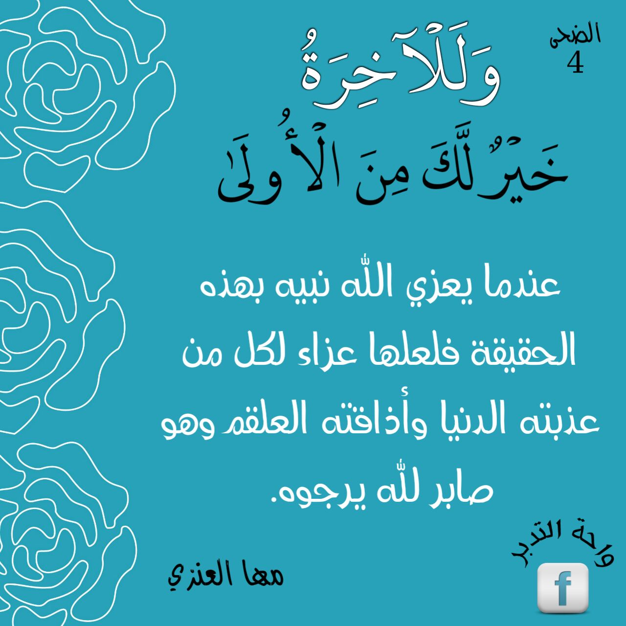 عندما يعزي الله نبيه بهذه الحقيقة فلعلها عزاء لكل من عذبته الدنيا وأذاقته العلقم وهو صابر لله يرجوه.