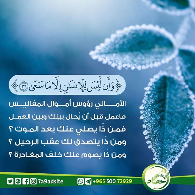 الاماني رؤوس اموال المفاليس فاعمل قبل ان يحال بينك وبين العمل فمن ذا يصلي عنك بعد ال... المزيد