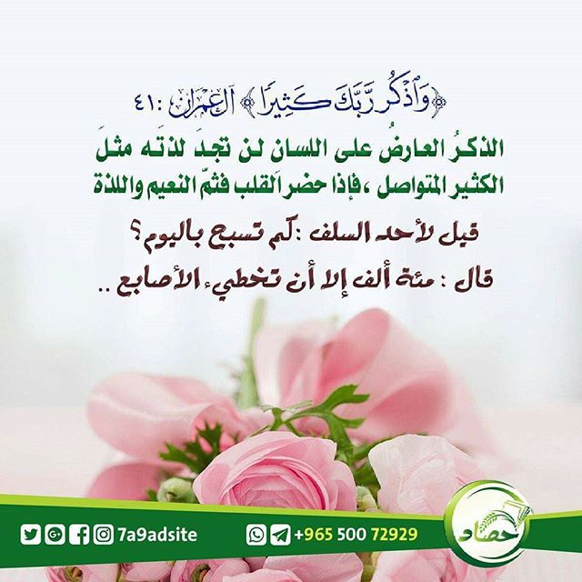 الذكر العارض علي اللسان لن تجد لذته مثل الكثير المتواصل فإذا حضر القلب فثم النعيم واللذة قيل لاحد السلف : كم تسبح باليوم ؟ قال : مئة الف الا ان تخطىء الاصابع