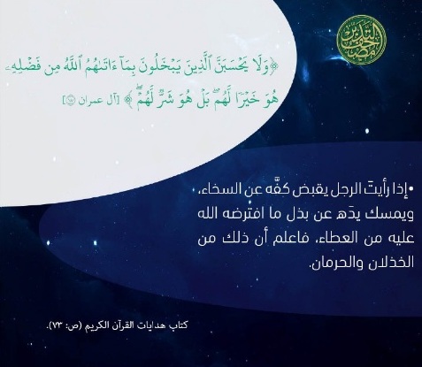 ( وَلَا يَحْسَبَنَّ الَّذِينَ يَبْخَلُونَ بِمَا آتَاهُمُ اللَّهُ مِن فَضْلِهِ هُوَ خَيْرًا لَّهُم بَلْ هُوَ شَرٌّ لَّهُمْ )