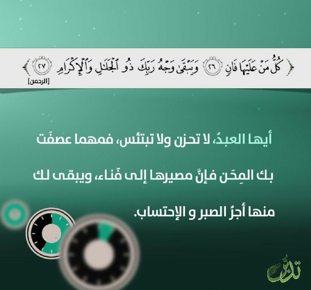 ﴿كُلُّ مَنْ عَلَيْهَا فَانٍ ﴾ ، ﴿ وَيَبْقَى وَجْهُ رَبِّكَ ذُو الْجَلَالِ وَالْإِكْرَامِ ﴾
