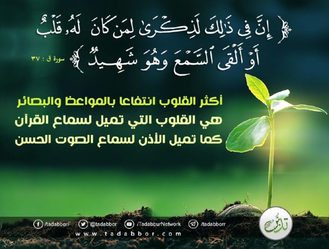 ﴿ إِنَّ فِي ذَلِكَ لَذِكْرَى لِمَن كَانَ لَهُ قَلْبٌ أَوْ أَلْقَى السَّمْعَ وَهُوَ شَهِيدٌ ﴾