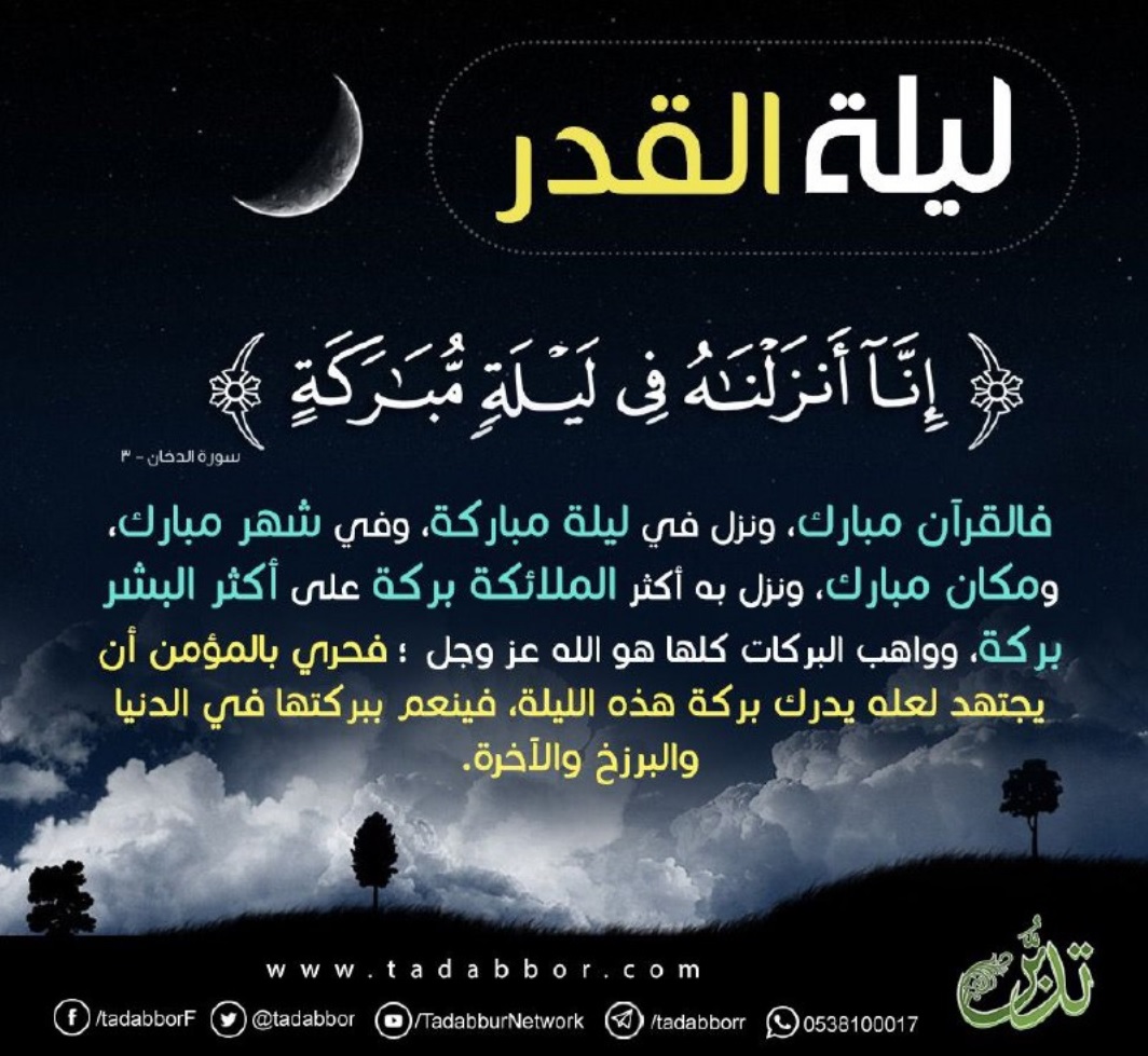 تدبـر كيف جمـع الله في ليلـة القدر أنواع البركات: فالقرآن مبارك،