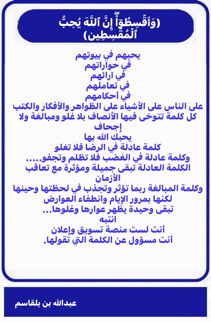 كل كلمة تتوخى فيها الأنصاف بلا غلو و... المزيد