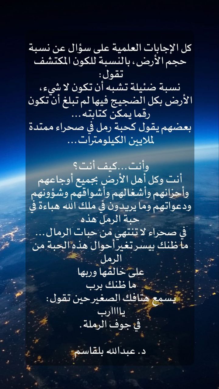 الأرض بكل الضجيج فيها لم تبلغ أن تكون رقما يمكن كتابته...