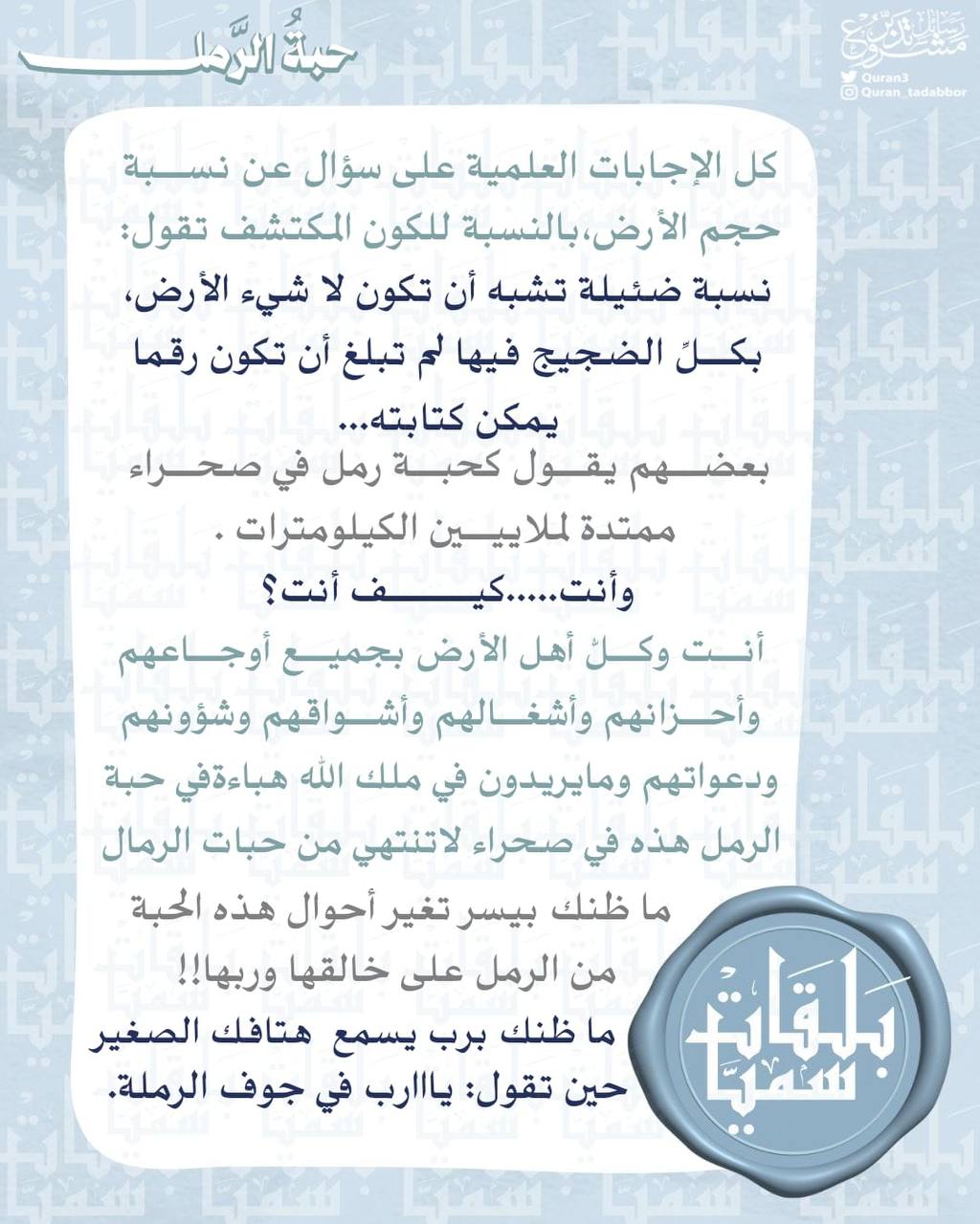 بعضهم يقول كحبة رمل في صحراء