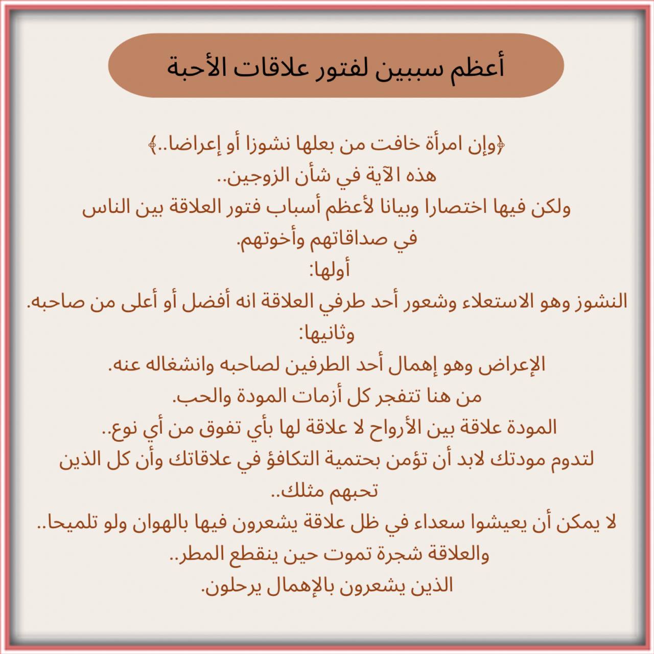 ولكن فيها اختصارا وبيانا لأعظم أسباب فتور العلاقة بين الناس