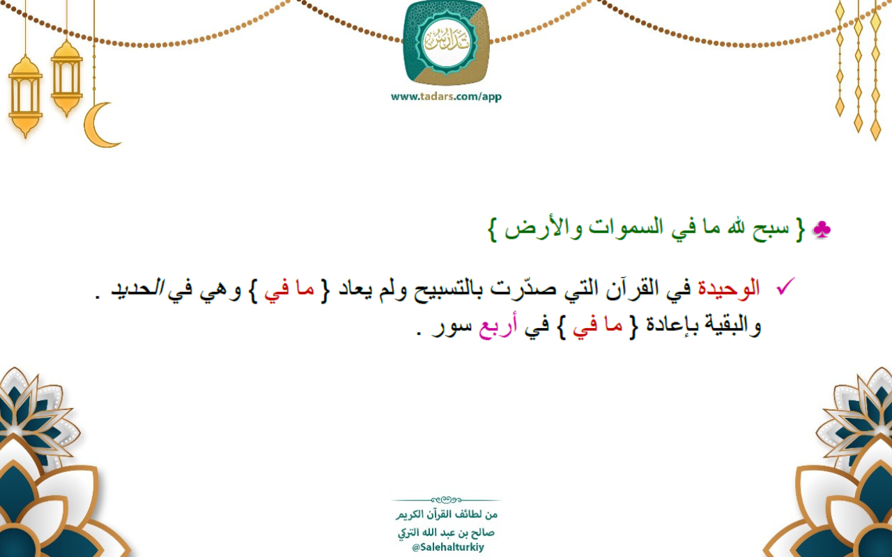 • { ما في السموات والأرض } ، { ما في السموات وما الأرض } { من في السموات ومن في الأرض } ، { من في السموات والارض }