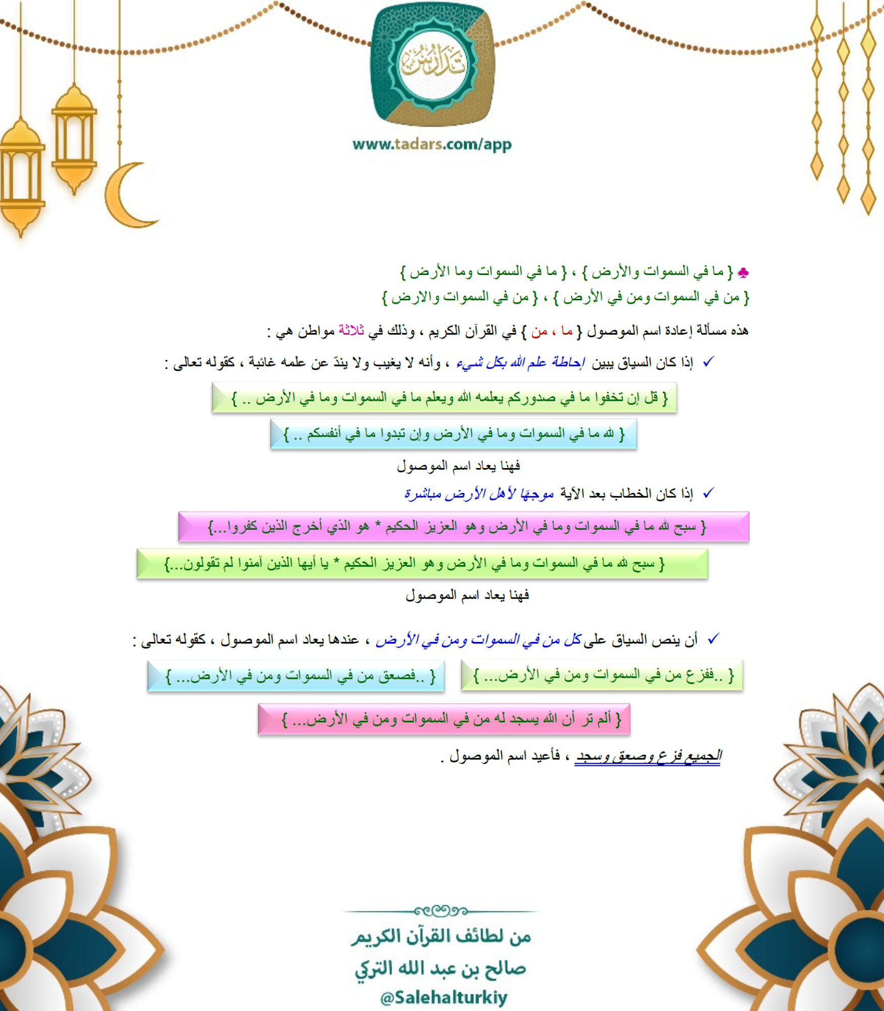 - أن ينص السياق على كل من في السموات ومن في الأرض ، عندها يعاد اسم الموصول ، كقوله تعالى :