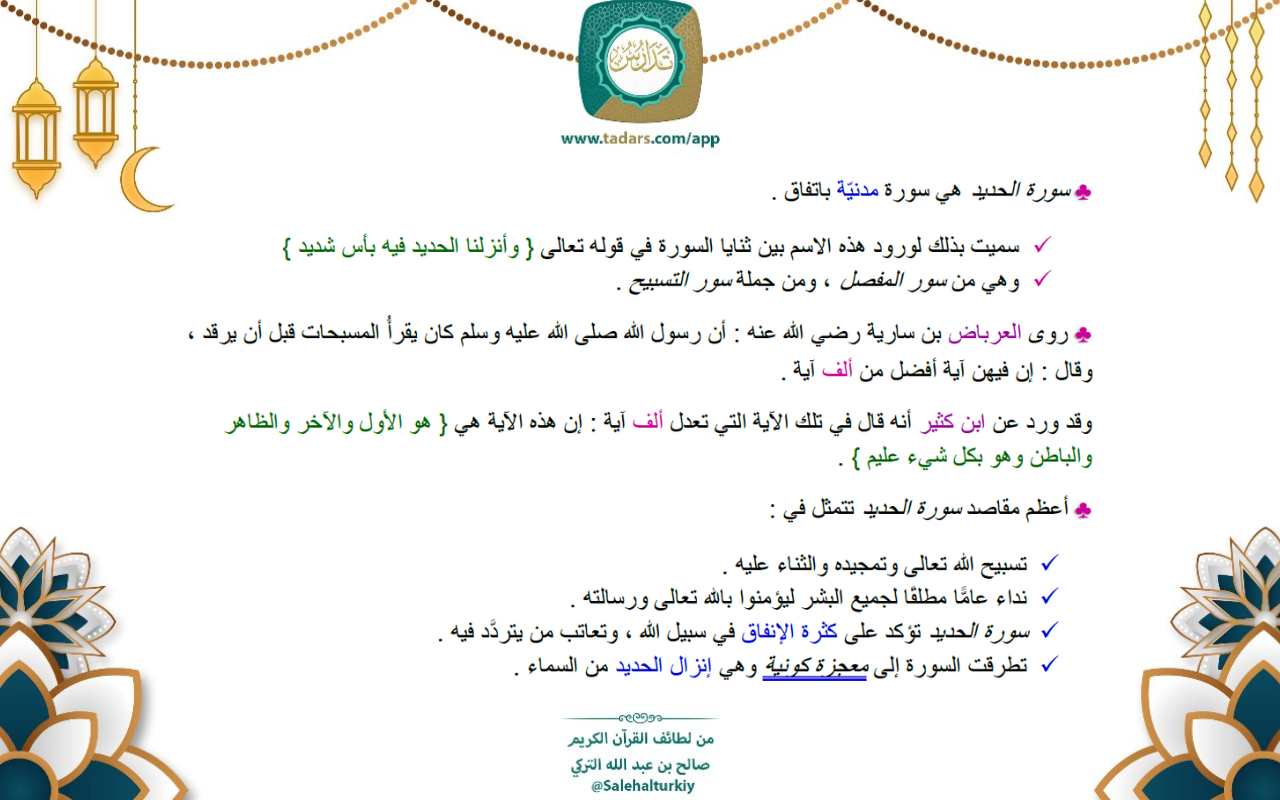 • سورة الحديد هي سورة مدنيّة باتفاق .