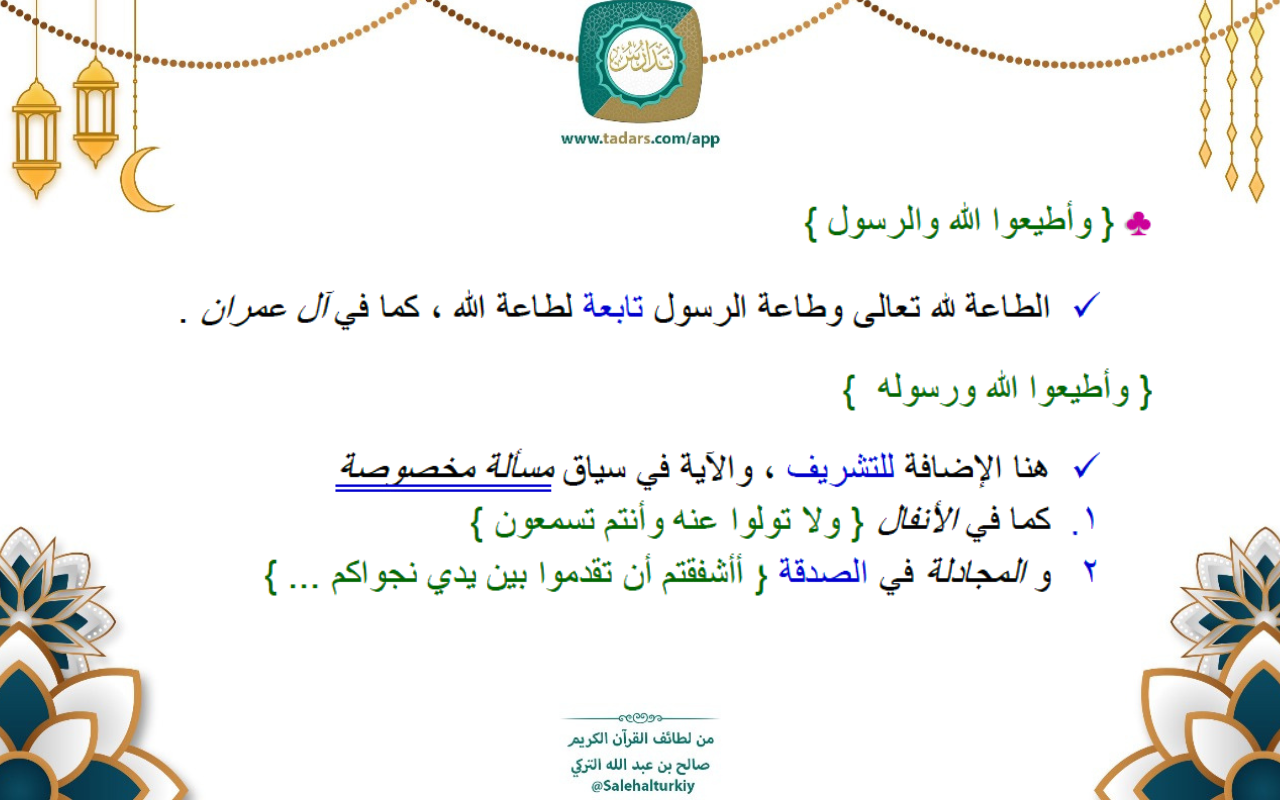 • { وأطيعوا الله والرسول }