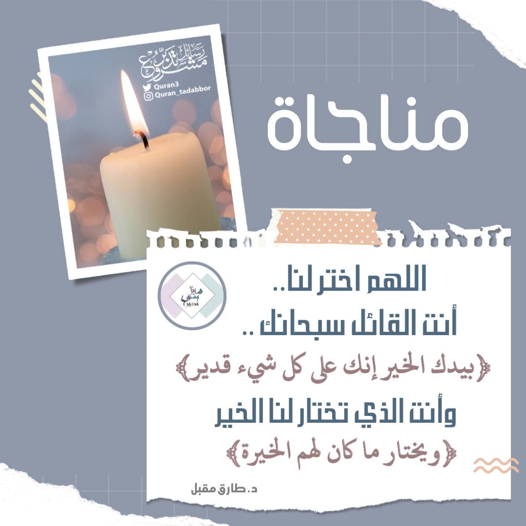 اللهم اختر لنا، أنت القائل سبحانك .. (بِيَدِكَ الْخَيْرُ؛ إِنَّكَ عَلَى كُلِّ شَيْءٍ قَدِيرٌ) وأنت الذي تختار لنا الخير (وَيَخْتَارُ مَا كَانَ لَهُمُ الْخِيَرَةُ).