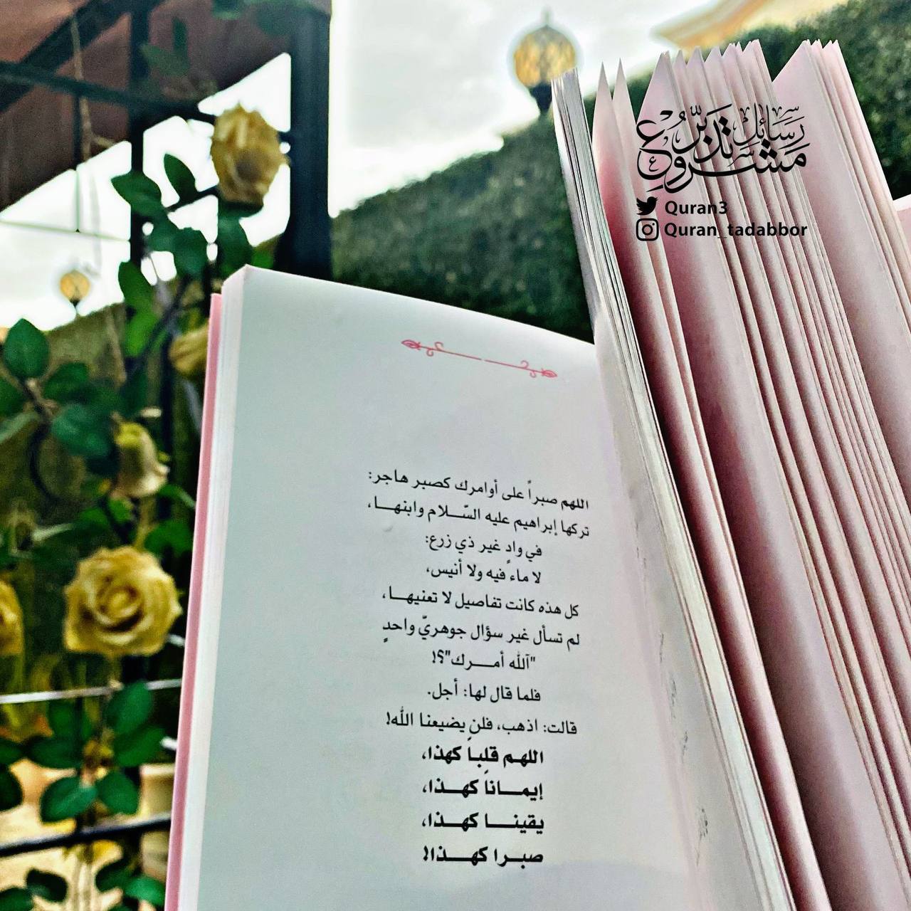 اللهم صبراً على أوامرك كصبر هاجر: تركها إبراهيم عليه السلام وابنها، في واد غير ذي زرع: لا ماء فيه ولا أنيس، كل هذه كانت تفاصيل لا تعنيها، لم تسأل غير سؤال جوهري واحد "الله أمرك "؟! فلما قال لها: أجل. قالت: اذهب، فلن يضيعنا الله! اللهم قلبا كهذا، إيمانا كهذا، يقينا كهذا، صبرا كهذا!.