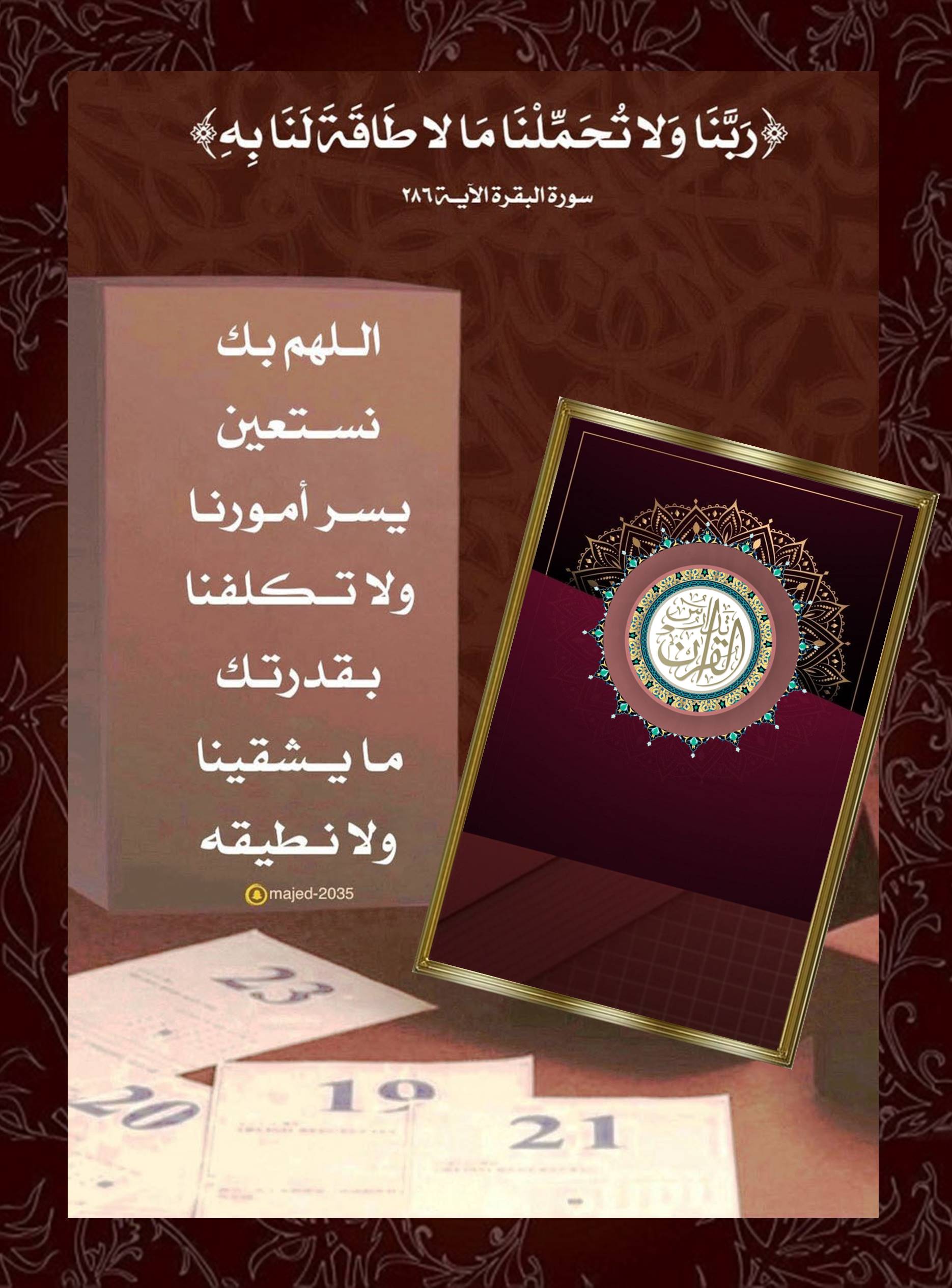 اللهم بك نستعين يسر أمورنا ولا تكلفنا بقدرتك ما يشقينا ولا نطيقه.