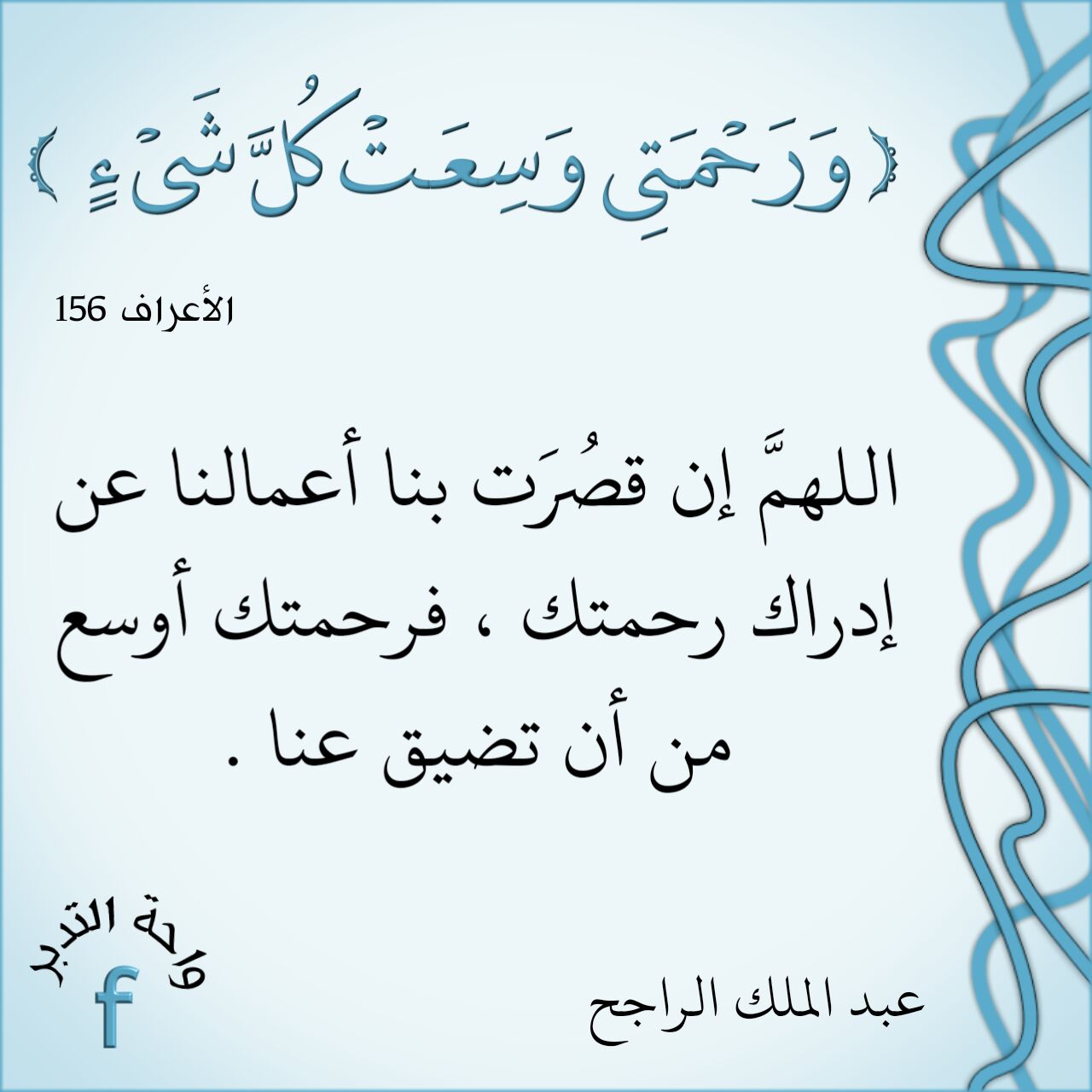 اللهمَّ إن قصُرَت بنا أعمالنا عن إدراك رحمتك، فرحمتك أوسع من أن تضيق عنا.