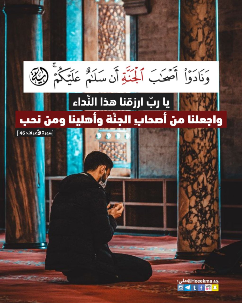 يا ربّ ارزقنا هذا النّداء، واجعلنا من أصحابِ الجنّة وأهلينا ومن نحب.