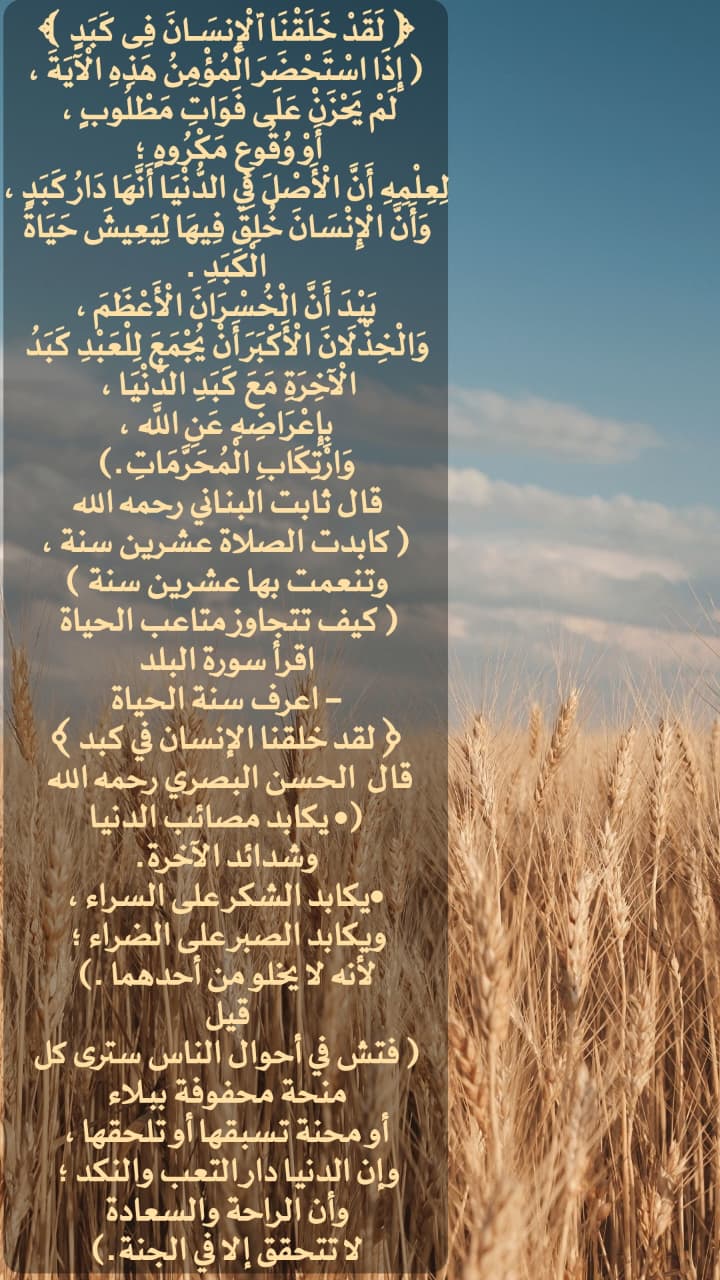 - اعرف سنة الحياة: "لقد خلقنا الإنسان في كبد"