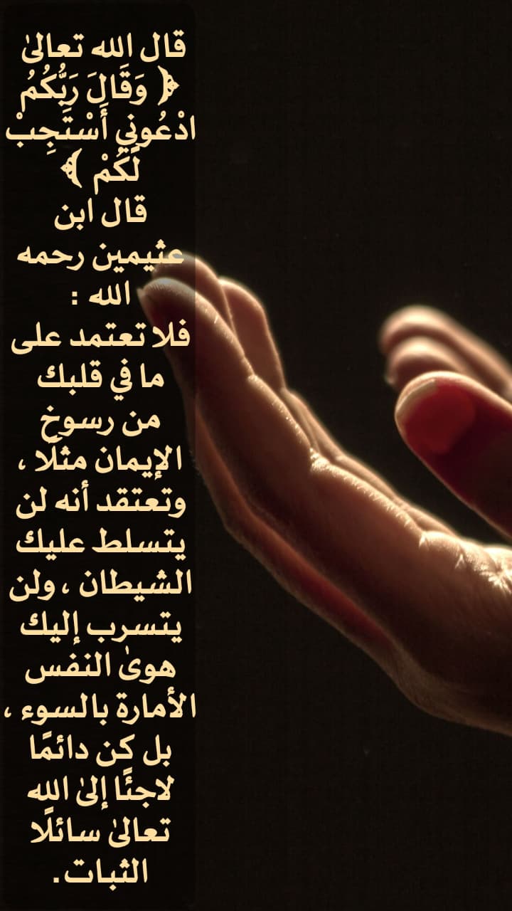 فلا تعتمد على ما في قلبك من رسوخ الإيمان مثلا، وتعتقد أنه لن يتسلط عليك الشيطان، ولن يتسرب إليك هوى النفس الأمارة بالسوء، بل كن دائما لاجئا إلى الله تعالى سائلا الثبات.