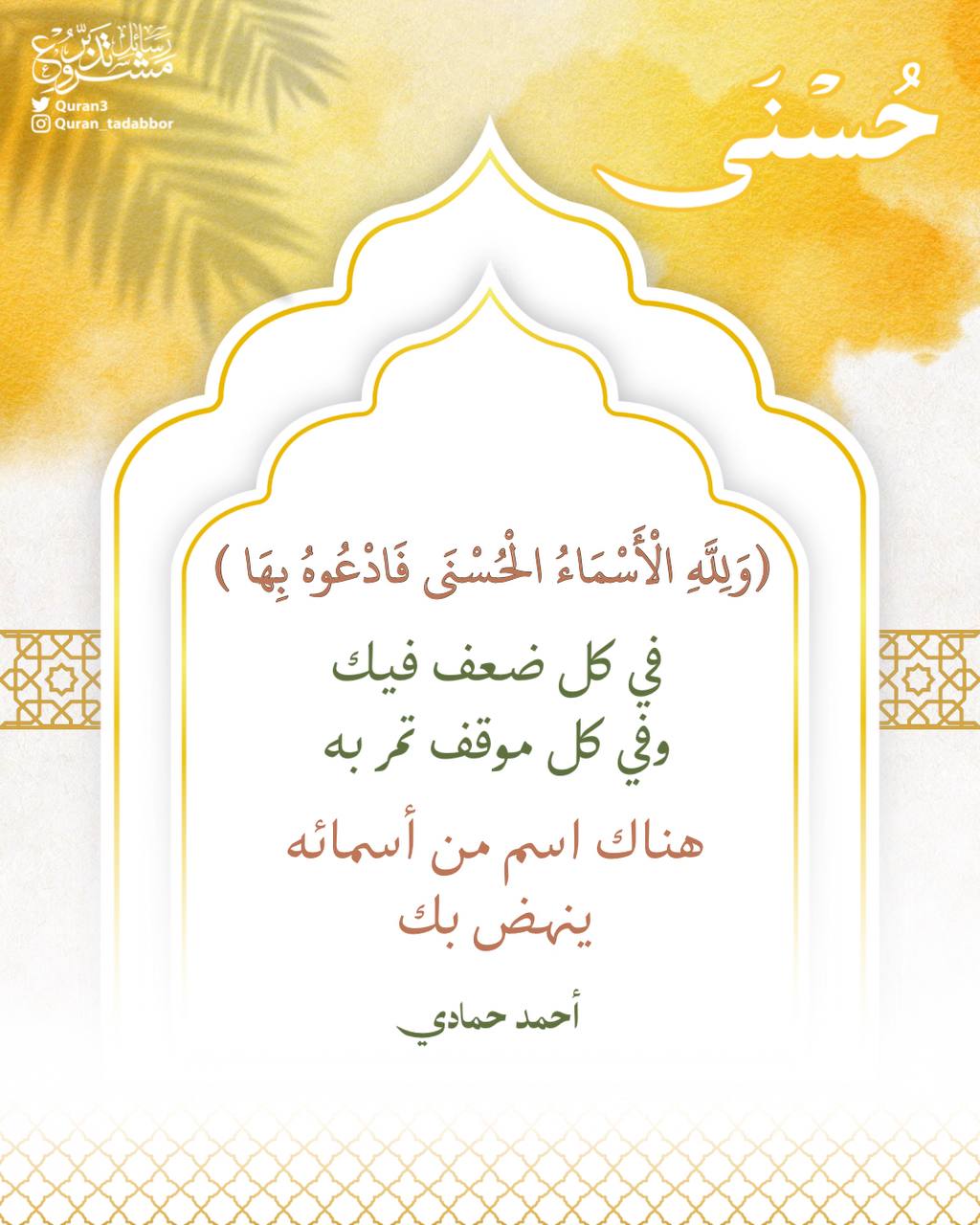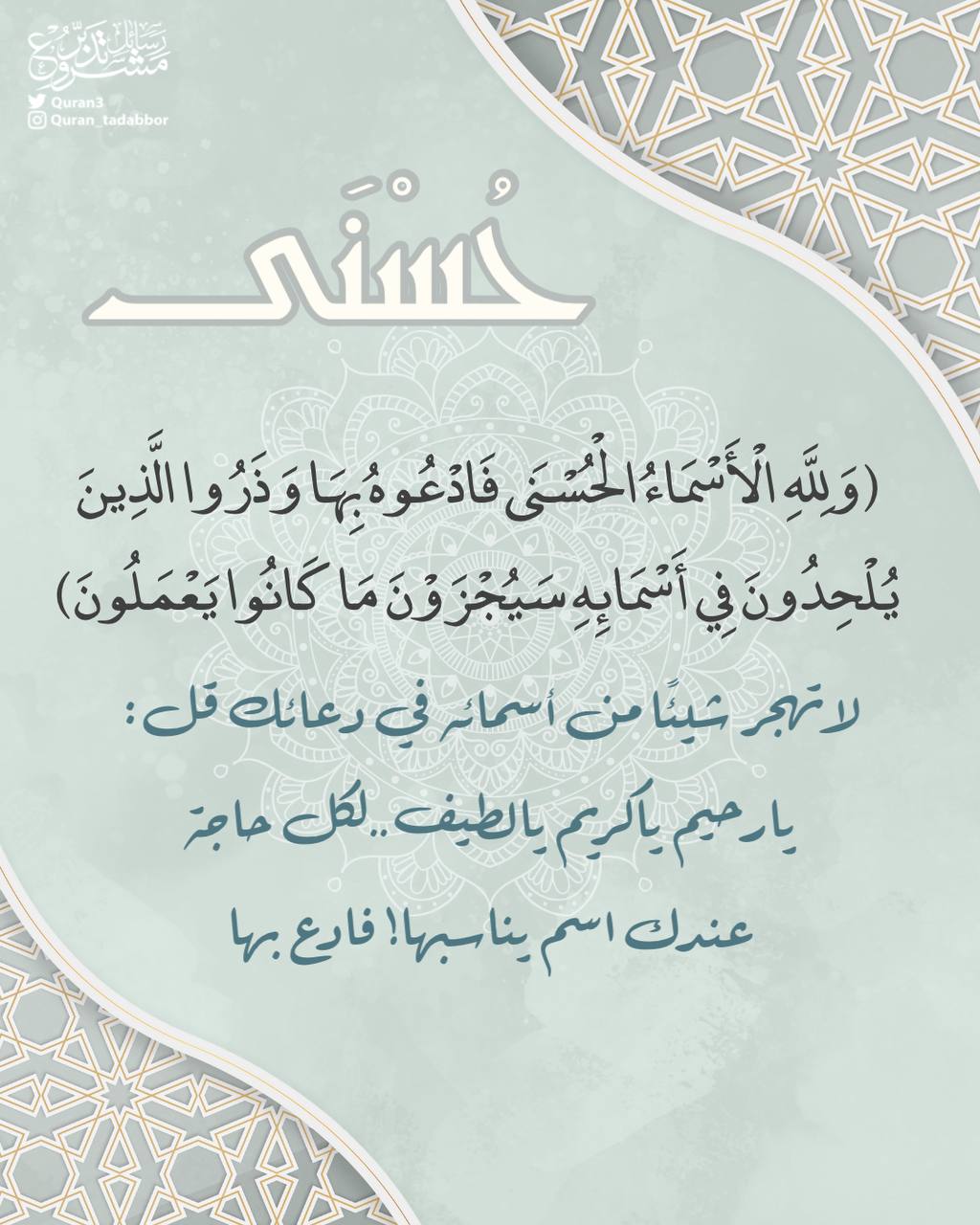 لاتهجر شيئًا من أسمائه في دعائك قل: