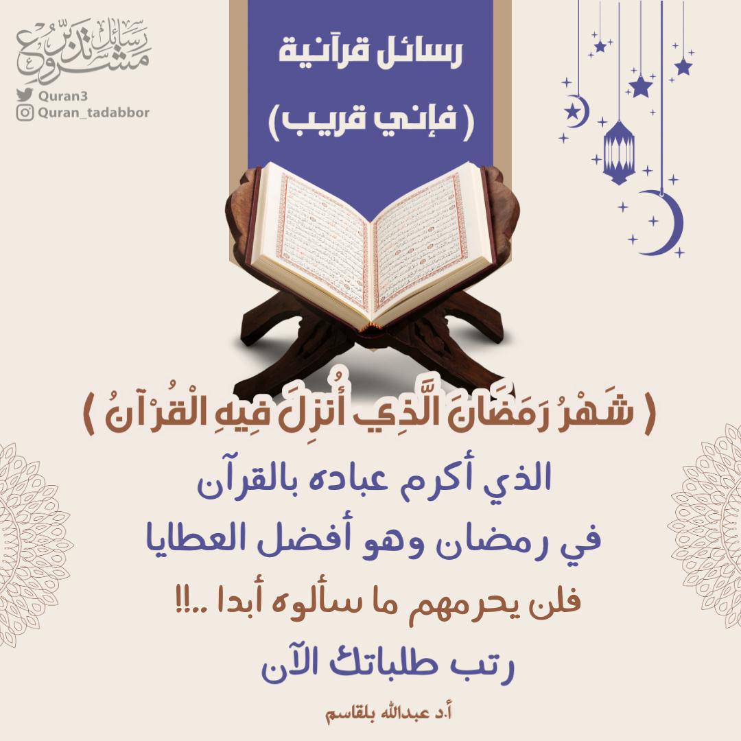 الذي أكرم عباده بالقرآن في رمضان وهو أفضل العطايا، فلن يحرمهم ما سألوه أبدا ..